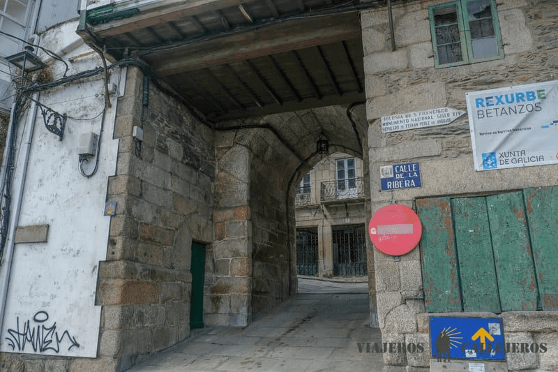 En esta puerta y en las calles adyacentes podrás ver la típica concha en el suelo que marca el paso de los peregrinos por el Camino Inglés, considerada una de las mejores rutas del Camino de Santiago, cuando este pasa por Betanzos.