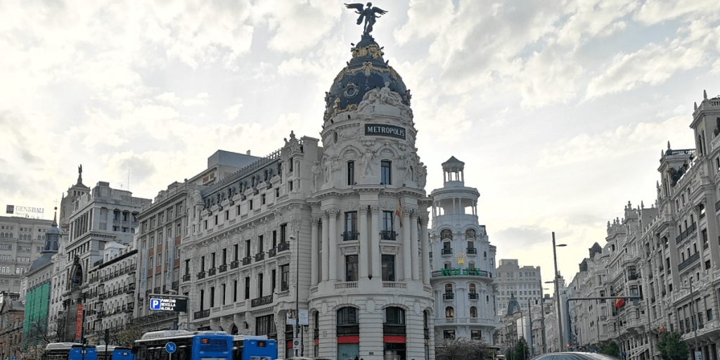 El Edificio Metrópolis es uno de los edificios más emblemáticos y fotografiados de Madrid, ubicado en la esquina de la Gran Vía y la Calle de Alcalá. Su arquitectura ecléctica, con influencias francesas, destaca por su cúpula alada coronada por una estatua de la Victoria Alada. Originalmente fue construido a principios del siglo XX para la compañía de seguros La Unión y el Fénix Español. Actualmente alberga oficinas y no está abierto al público para visitas turísticas en su totalidad, pero su fachada es una atracción imprescindible.